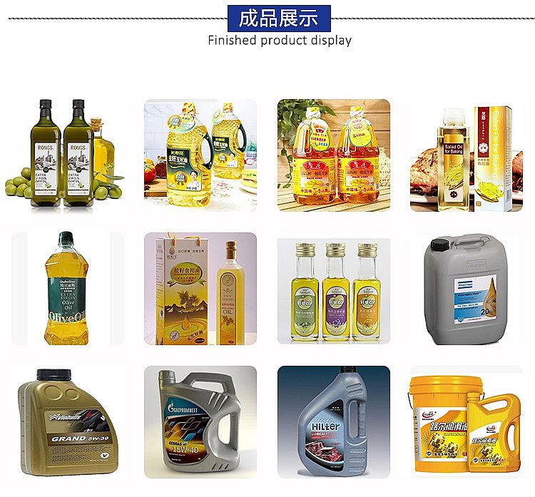 全自動食用油灌裝設(shè)備適用于灌裝各種油類,如菜籽油、食用油、大豆油、花椒油、玉米油、調(diào)和油等油類的定量灌裝。